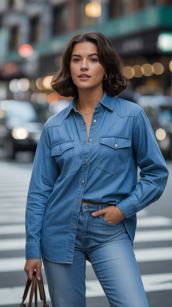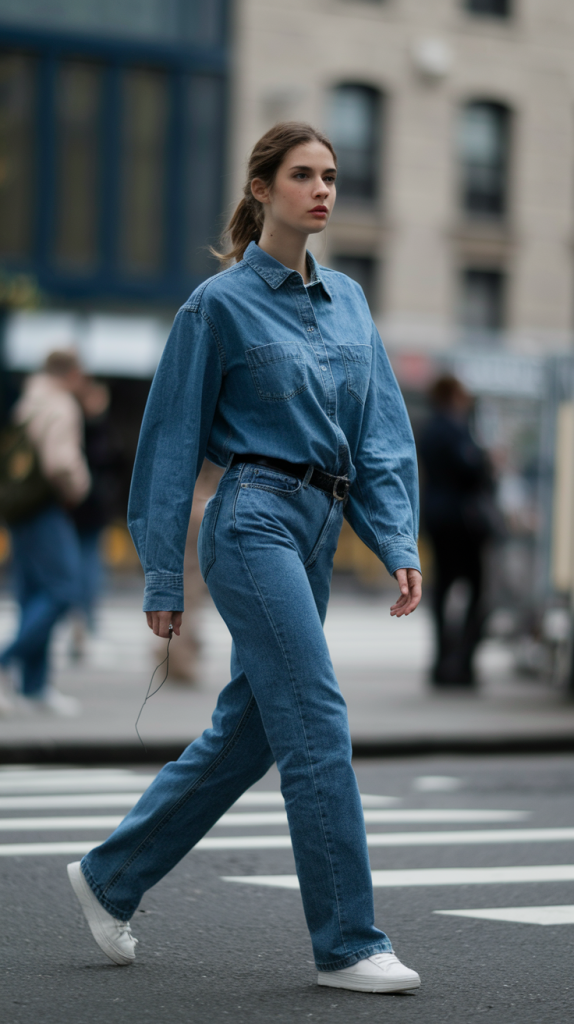 Denim-on-denim used to feel risky. Now it feels confident. When tones are similar and cuts are relaxed, denim becomes a neutral — reliable and modern.