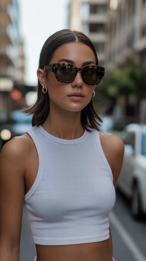 Casual chic often relies on one strong element. Sunglasses are the easiest way to add character without changing the whole outfit.