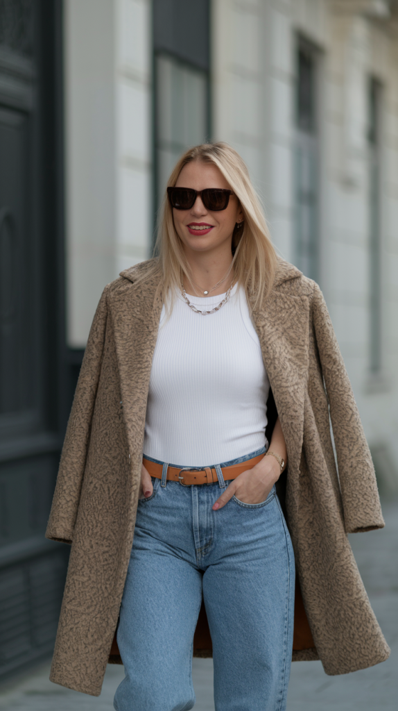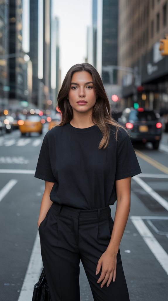 This look proves that casual chic isn’t about layering — it’s about precision. When basics fit correctly, they stop being basic.