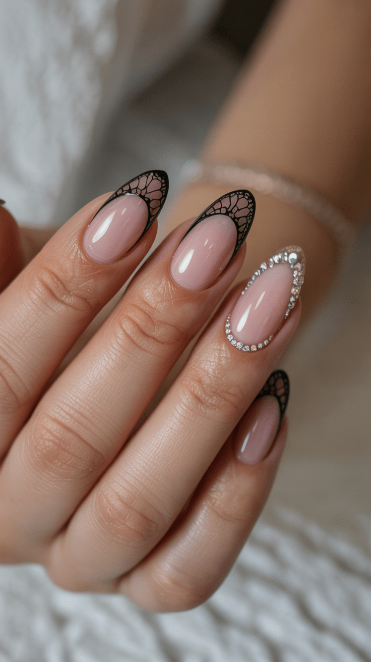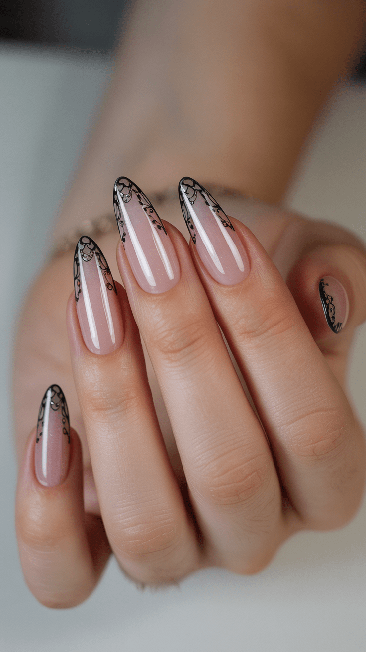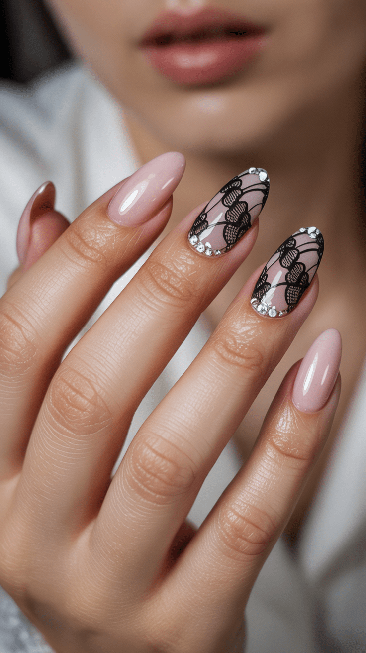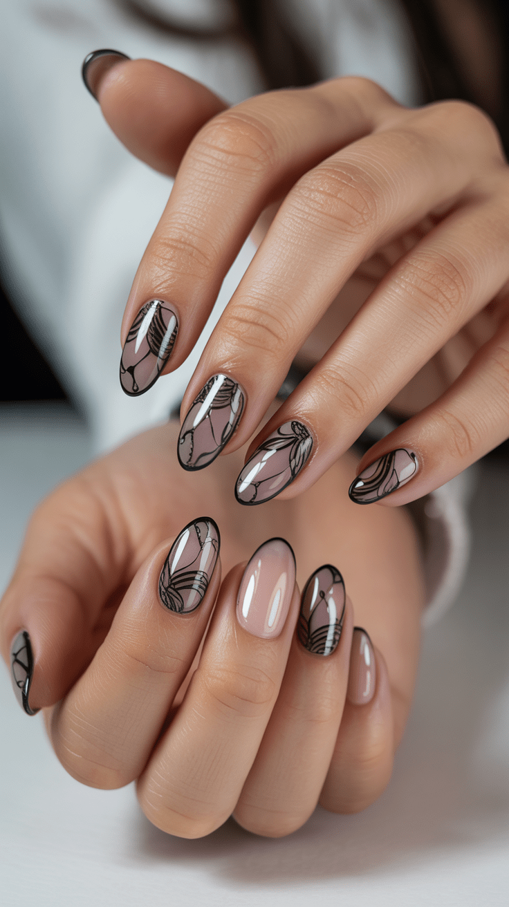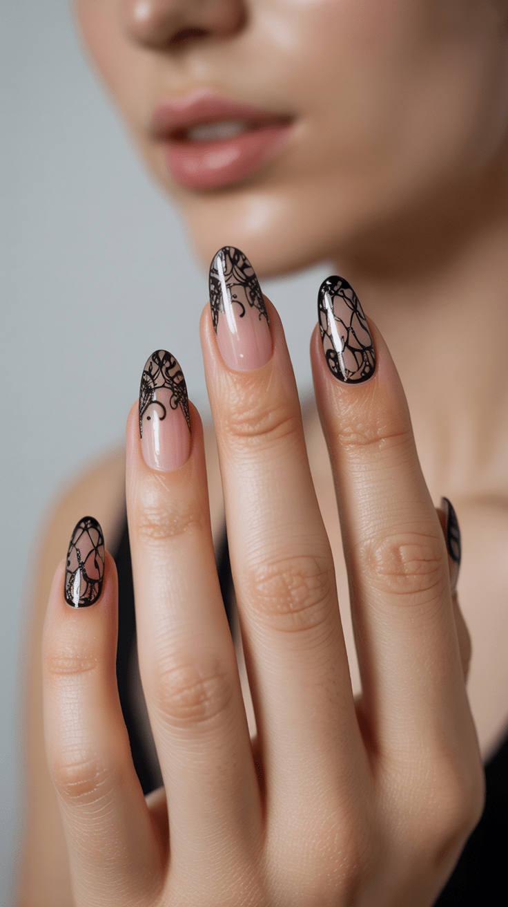 Black lace nails are the perfect balance of mystery and passion. Imagine wearing a beautiful black evening dress and having black lace nails to match it perfectly. I remember the first time I tried this style.