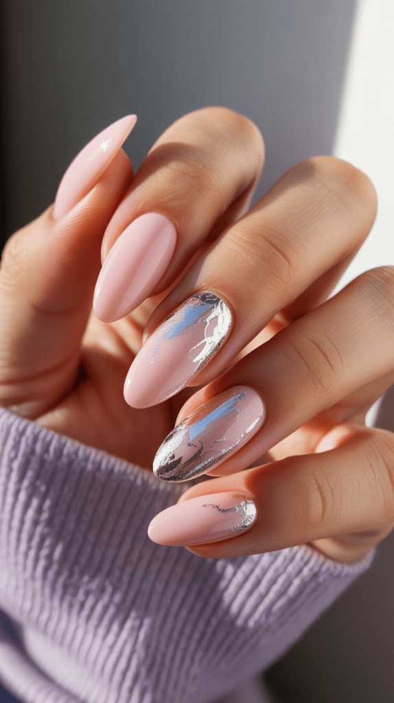 - Metallic Foil: Gold or silver foil adds an elegant sparkle and unique texture to pink nails.