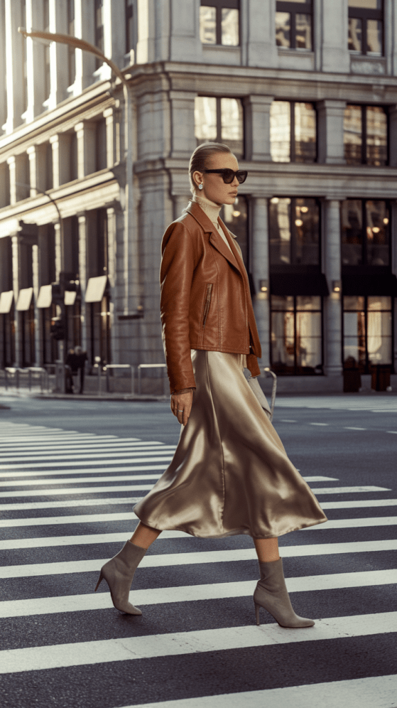 Mixing textures — like pairing a knit top with a satin skirt — creates visual harmony while keeping your outfit interesting and tactile.