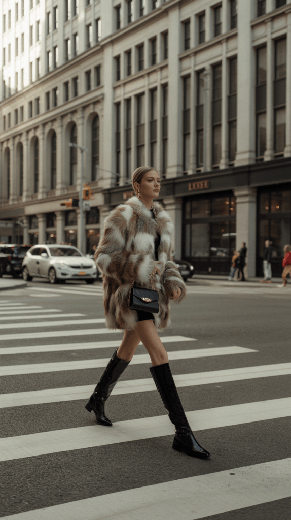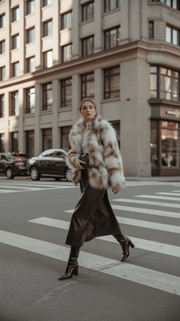 The Winter Baddie look combines confidence and glam with modern structure. Think faux fur, leather pants, oversized coats, and statement boots — bold but balanced. It’s not about being flashy, it’s about expressing strength through elegance and attitude.