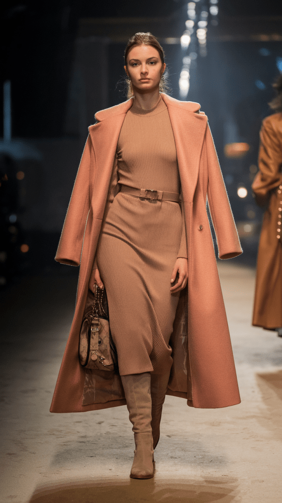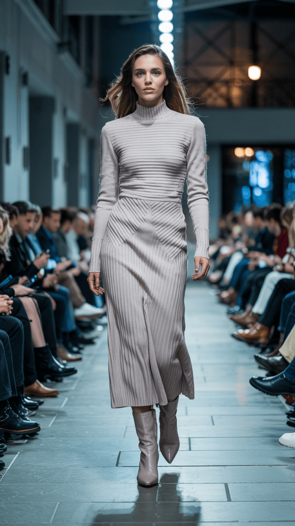 Wool blends and heavier knits are everywhere, especially in midi and maxi silhouettes. These materials not only provide insulation but also drape beautifully, offering both structure and fluidity.