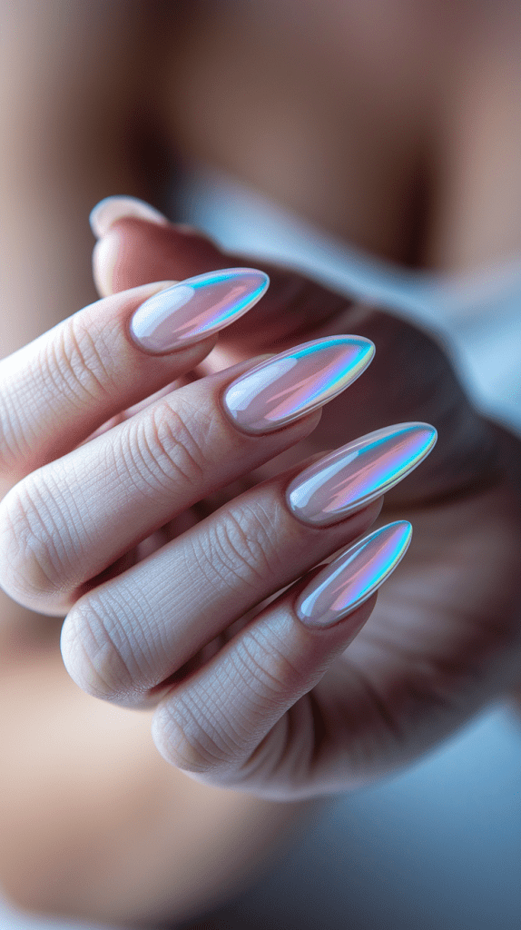 These nails shift in the light, reflecting different colors from every angle. The effect is hypnotic—like wearing a little bit of magic on your fingertips.
