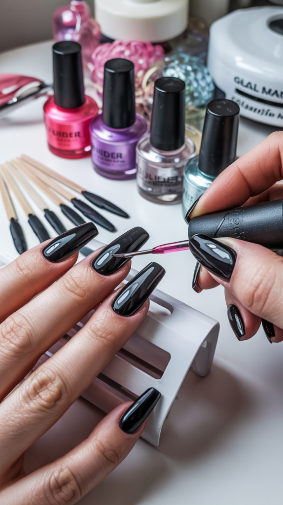 Choosing between DIY and salon gothic coffin nails depends largely on the design and desired longevity. Simple gothic nails — such as single-color matte black or deep red sets — can be done successfully at home with the right products and patience.