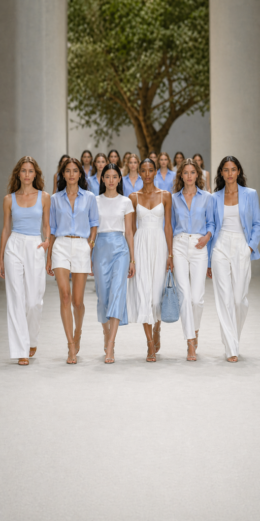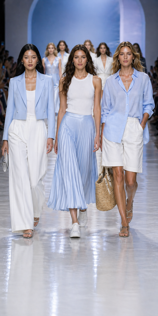 The cleanest version of this trend is built around icy blue and white. Continue with The Icy Blue and White Capsule Wardrobe for Fresh Summer Outfits if you want a simple color palette you can repeat all summer.