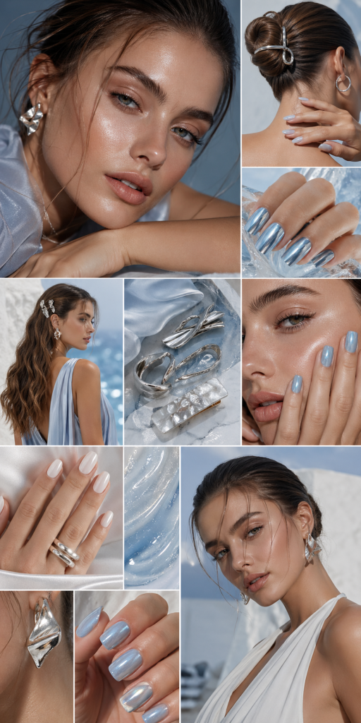 Icy blue looks best when it is balanced with clean white, structured denim, silver jewelry, crisp tailoring, simple sandals, modern bags, and minimal beauty details. It should feel fresh, cool, and polished — not overly sugary.