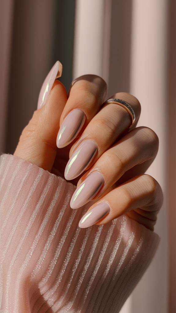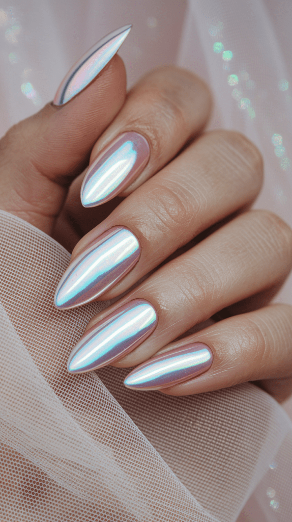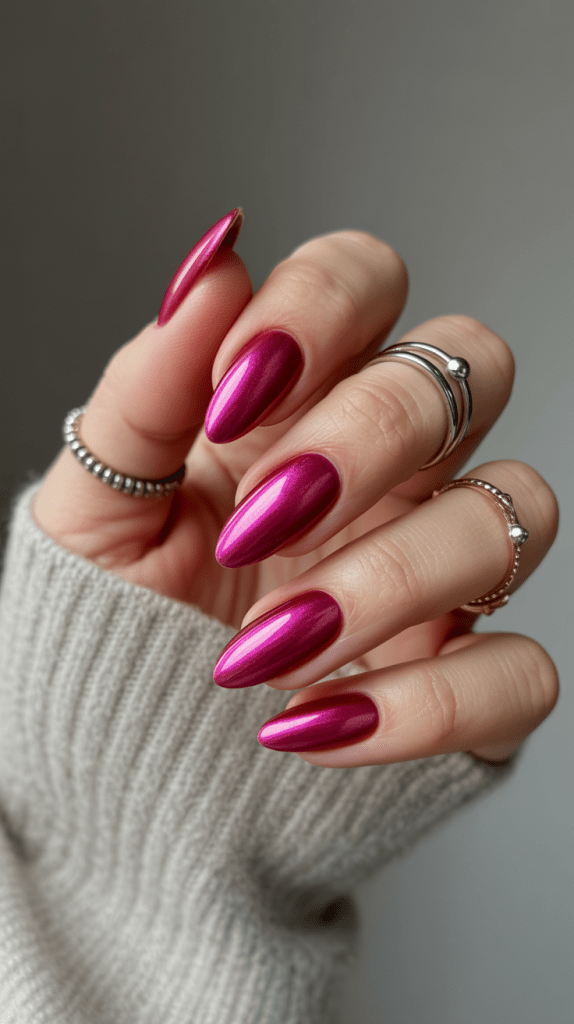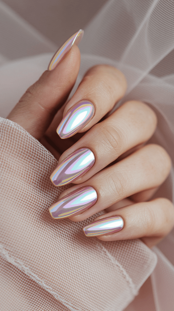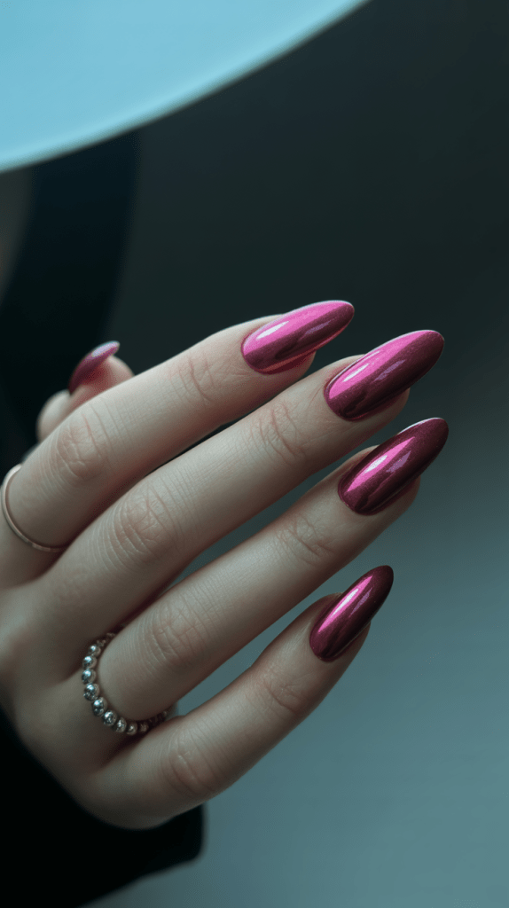 For a futuristic, mirror-like finish, pink chrome nails are the way to go. They reflect light beautifully and look super chic.