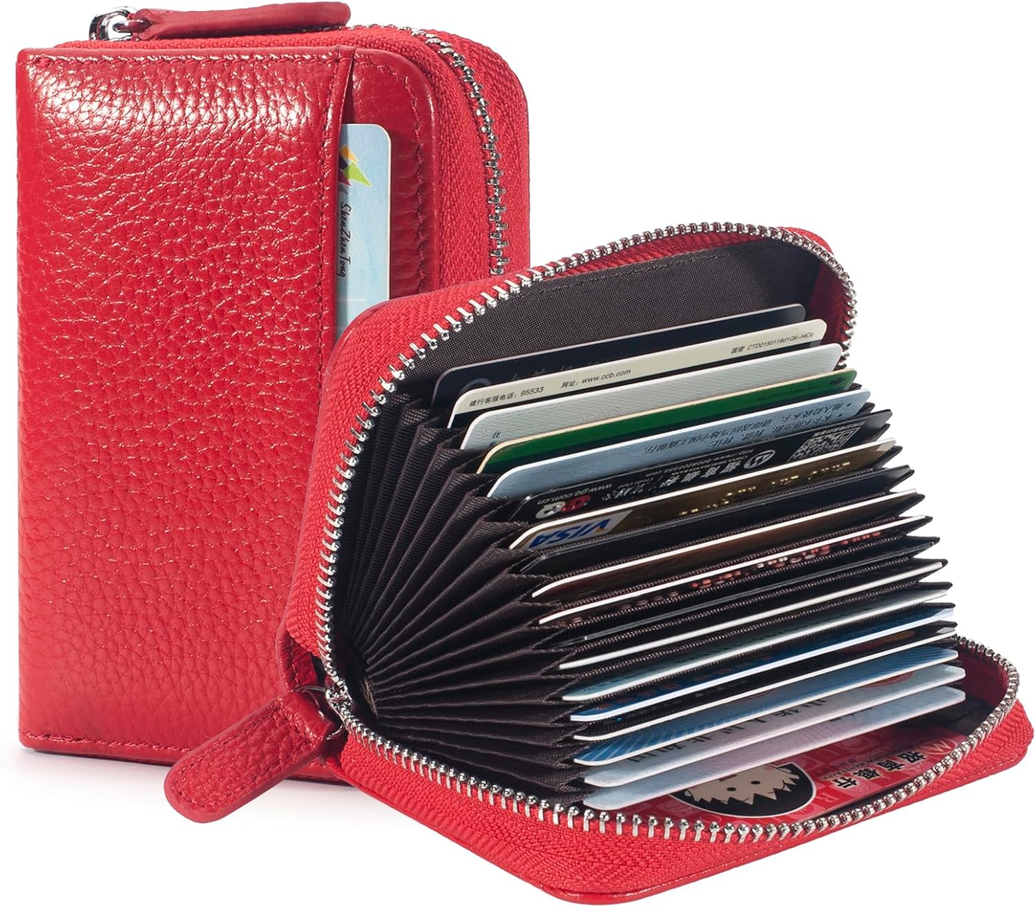 RFID Blocking Genuine Leather Accordion Wallet for Women Travel Card Organizer with Zipper