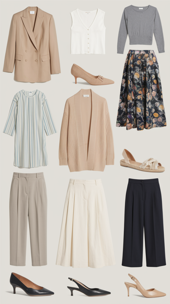 This selection covers everyday wear, office outfits, and casual occasions without overcrowding your wardrobe.