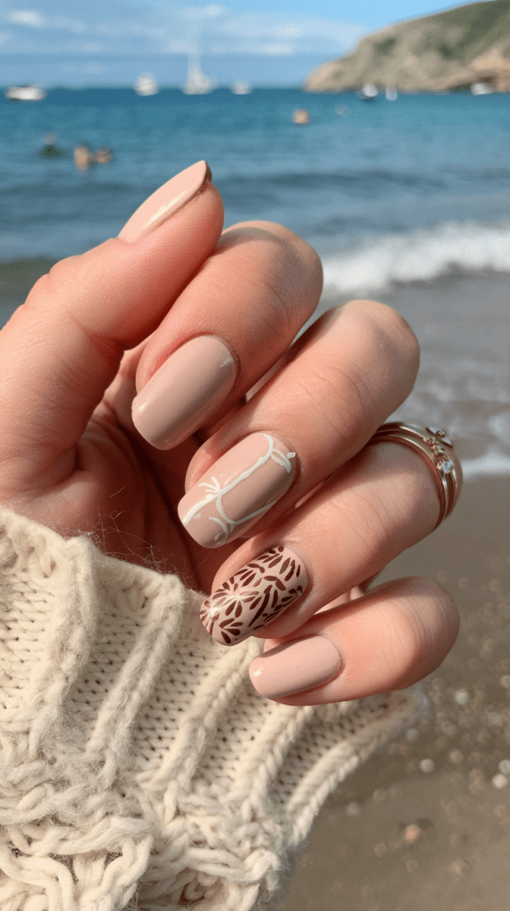 You can also vary it with subtle designs, such as a thin gold stripe down the middle of the nail or a small floral motif on one nail. Such small details will further highlight the clean beauty of the beige color.