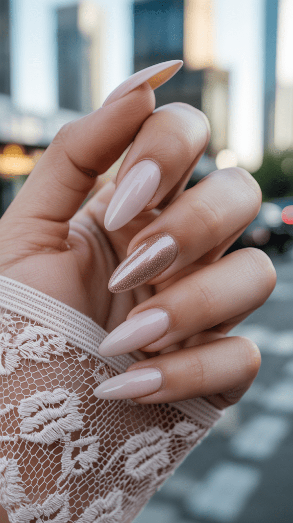 Choose nude or soft pink shades, keep nails short to medium length, and add a glossy or matte top coat for a polished yet natural look.