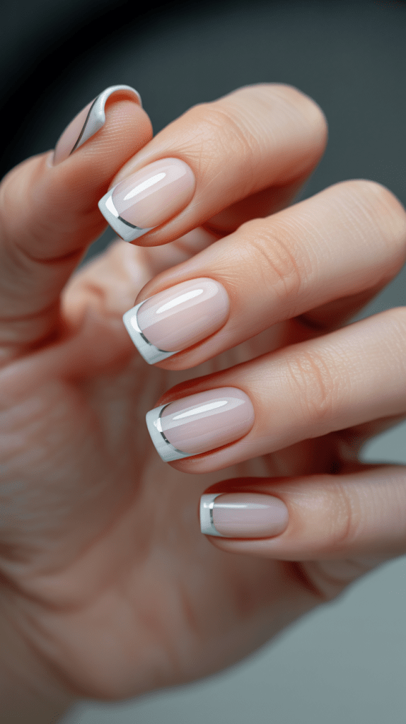 For example, think of a simple white French manicure paired with a soft beige or pink base. This classic, timeless design never goes out of style and elegantly highlights the natural beauty of your hands.