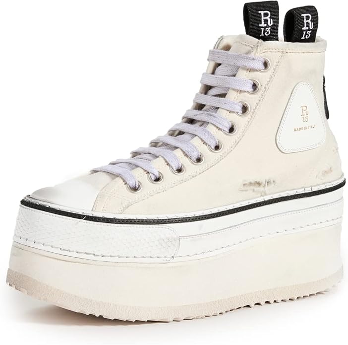 These sneakers are the epitome of rebellious femininity. The R13 Platform High Tops combine edgy, rock-inspired design with high-fashion construction. With an exaggerated sole, distressed canvas upper, and oversized silhouette, they’re for women who dress with bold intent and zero apologies.