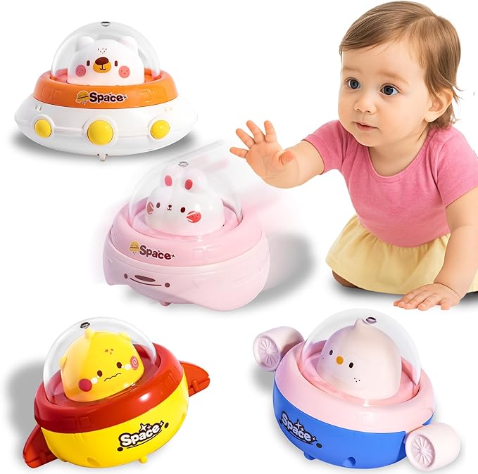 Toddlers love noise! Choose toys with lights and sounds that encourage movement and giggles. - Push-and-Go Cars or Animal Pop-Ups