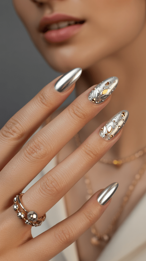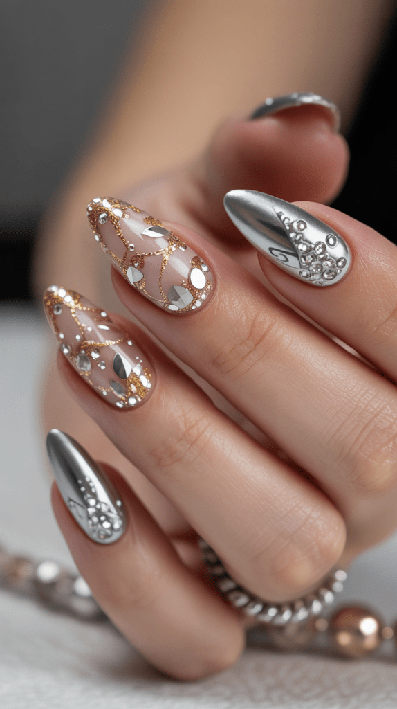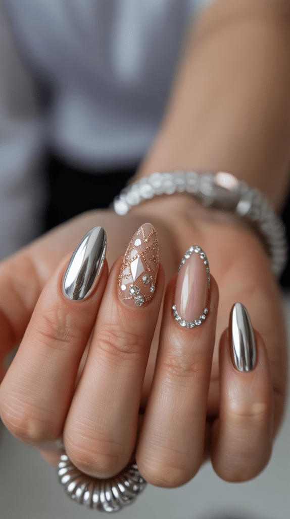 You can also mix different tones of silver, from metallic glitter to holographic variations.