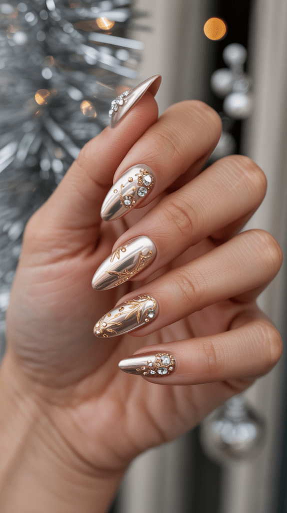 If you prefer a simpler style but still want a little festive sparkle, then a minimalist metallic design can be the perfect choice.