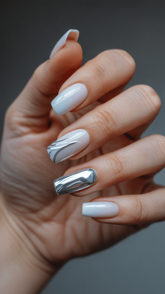 Try a glittery silver French manicure where the tips of the nails shine, or go for a completely metallic, mirror-effect silver design.